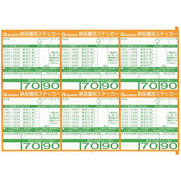 【コメリお取引先様専用】A4納品識別ステッカー 6枚シート 1箱