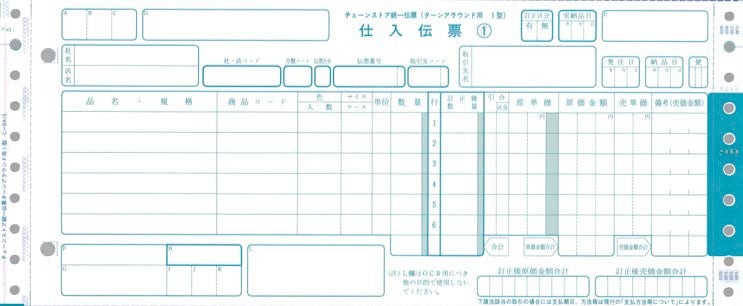 チェーンストア統一伝票 OCR用1型 C-BCA15 1箱(1000枚) 5枚複写 Noなし