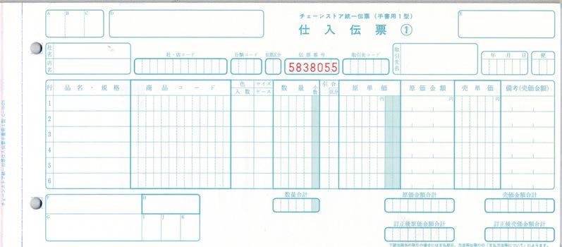 チェーンストア統一伝票 トッパン・フォームズ (手書き用1型) C-BH25 1箱(1000枚) 5枚複写 NOあり
